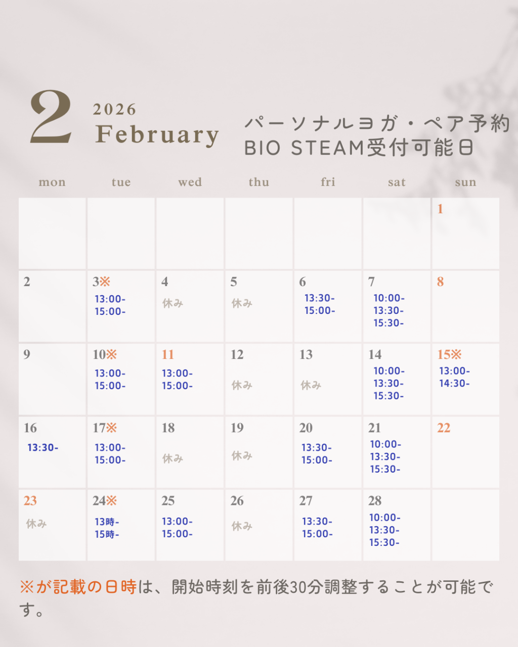 パーソナル予約についてはご希望の日時を公式ラインもしくはお問合せメールよりご連絡ください。