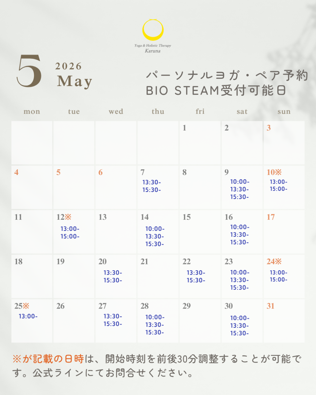 5月スケジュールです。